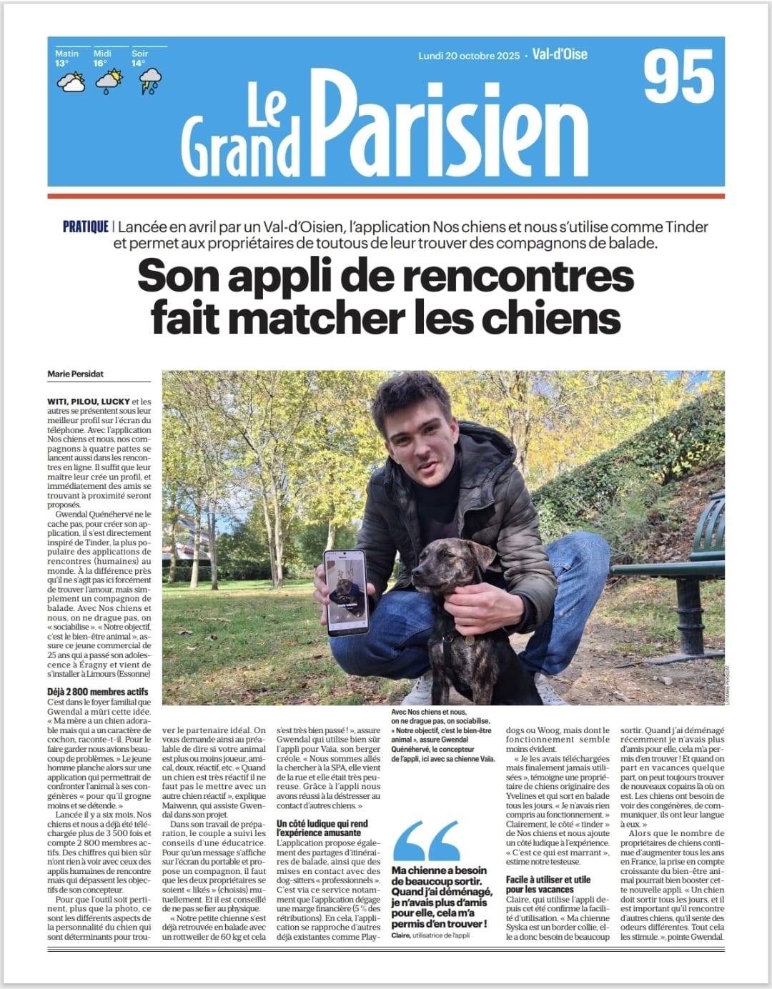 On arrive beaucoup plus facilement à trouver de nouvelles balades et de nouveaux copains pour notre chien. Merci ! 🙏"